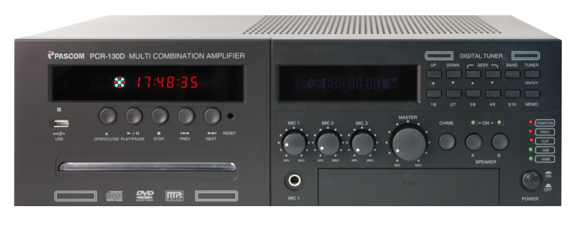 Input channel controls include MIC 1, 2, 3, AUX, and CD